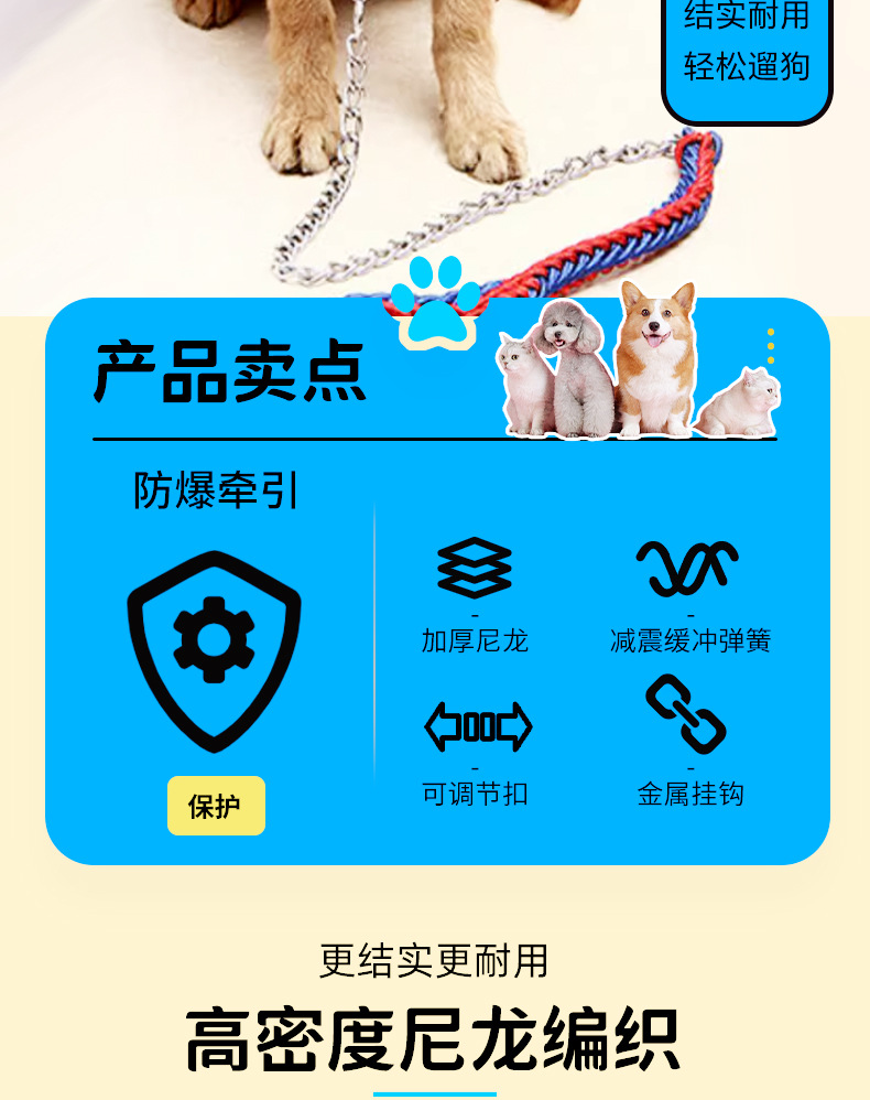 Net Celebrity Nylon Dog Chain Anti-Bite Explosion-Proof Impact Pet Eight-Strand Leash Medium Large Dog Walking Leash Golden Hair