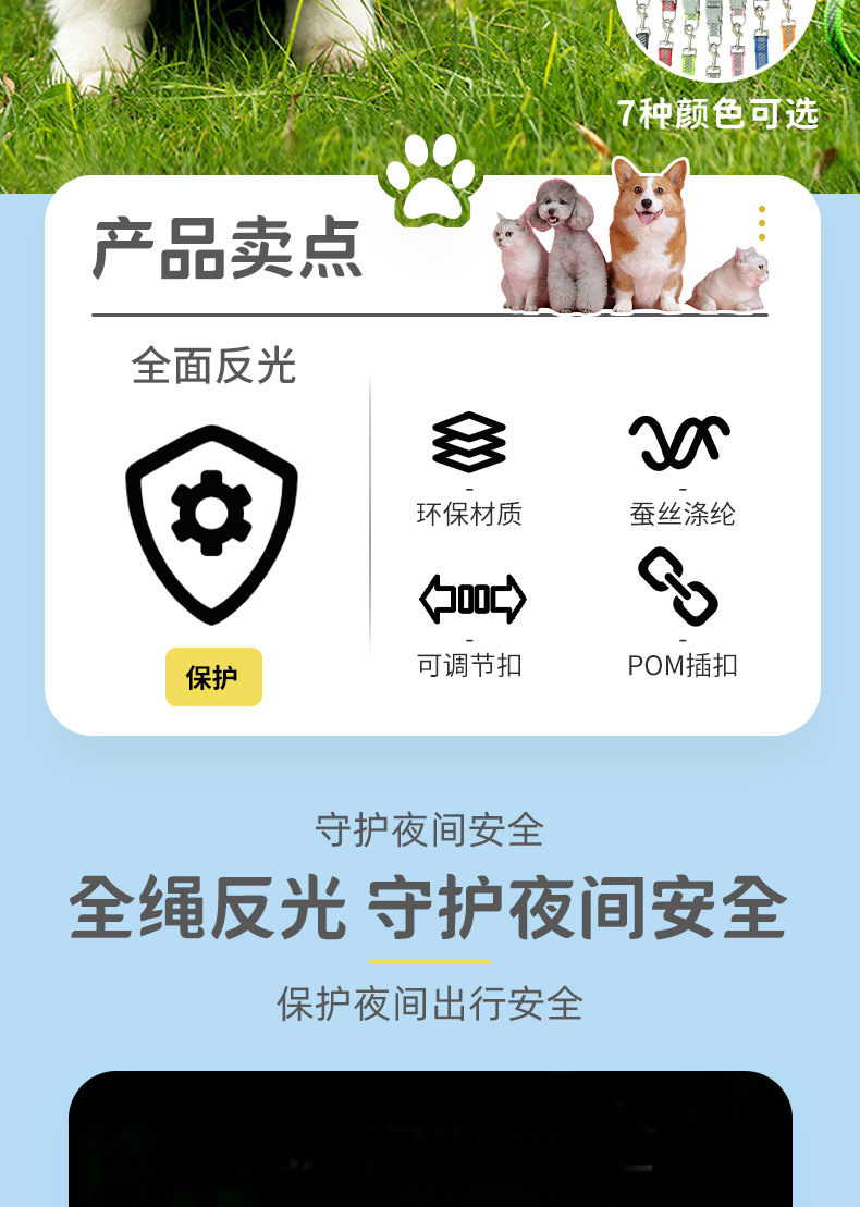 Black - lead rope + collar | Red - Lead rope + collar | Orange - Lead rope + collar | Fluorescent Green - lead rope + collar | Royal Blue - lead rope + collar | Pink - Lead rope + collar | Silver gray - lead rope + collar